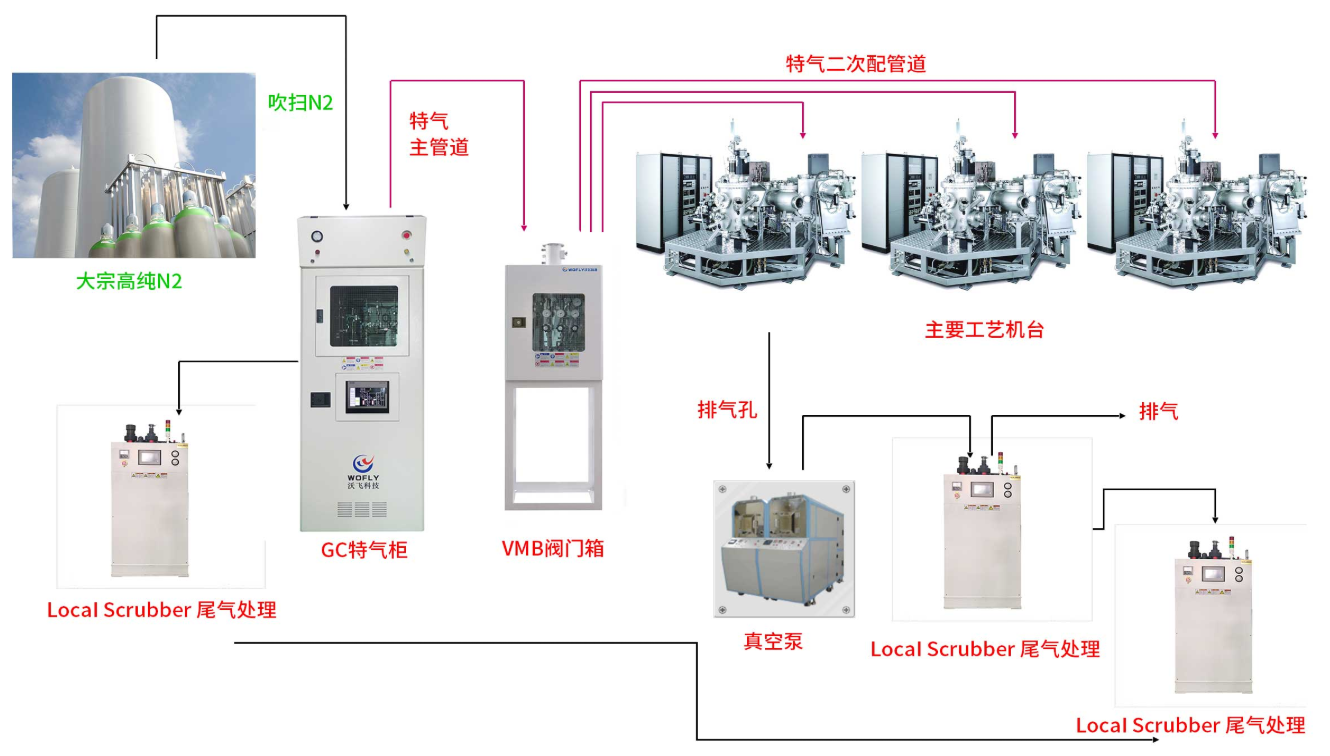 電子特氣管道系統(tǒng)的主要作用講解。電子特氣管道系統(tǒng)是半導(dǎo)體、顯示面板、光伏等高端制造業(yè)中不可或缺的核心基礎(chǔ)設(shè)施,其主要作用是為精密制造過程提供高純度、高穩(wěn)定性、高安全性的特種氣體輸送解決方案。以下從功能定位、技術(shù)特性、應(yīng)用場(chǎng)景三個(gè)維度展開詳細(xì)講解:
