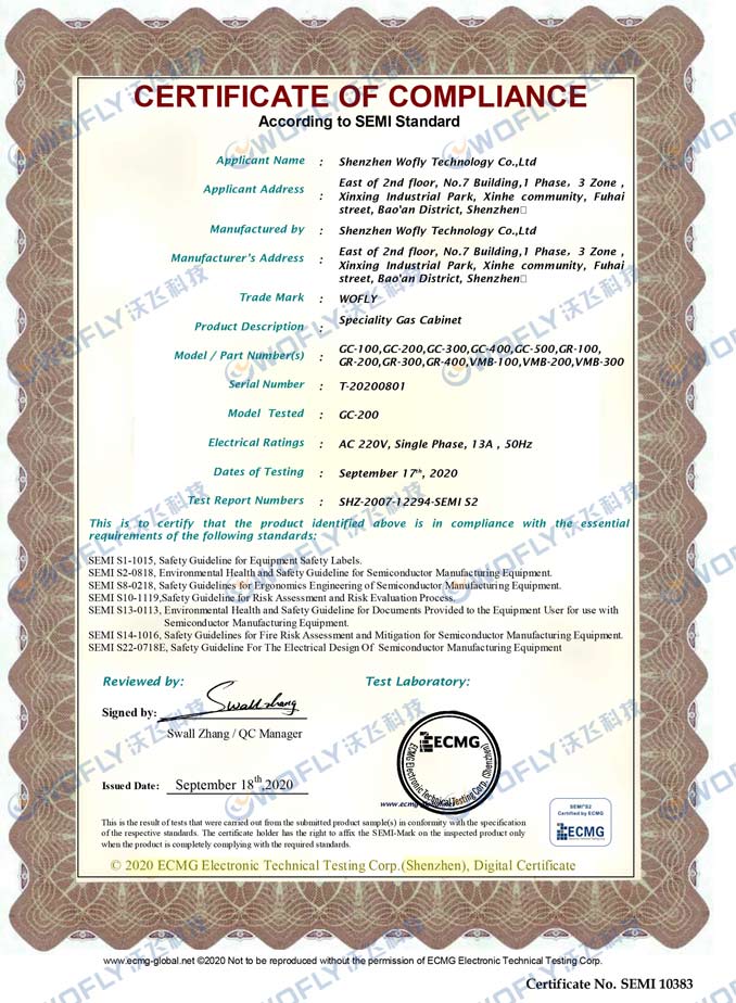 SEMI S2 標(biāo)準(zhǔn)涵蓋了半導(dǎo)體制造設(shè)備的環(huán)境、健康及安全條件,是一個(gè)綜合性的標(biāo)準(zhǔn)。代表了半導(dǎo)體廠家的基本安全要求,而半導(dǎo)體行業(yè)離不開特種氣體,所以保證安全穩(wěn)定輸送特種氣體的特氣柜也需要擁有SEMI S2認(rèn)證。
