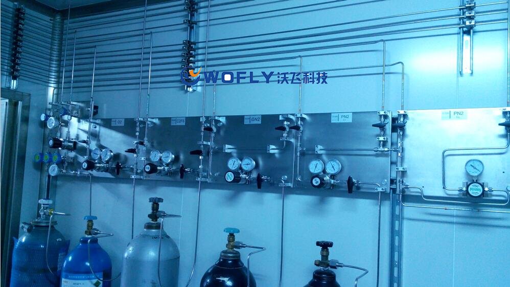 主要由氣源切換系統(tǒng)(一級減壓系統(tǒng))、管道及連接件系統(tǒng)、二級調(diào)壓系統(tǒng)、氣體過濾純化系統(tǒng)、氣體報警系統(tǒng)、壓力表、球閥等組成。