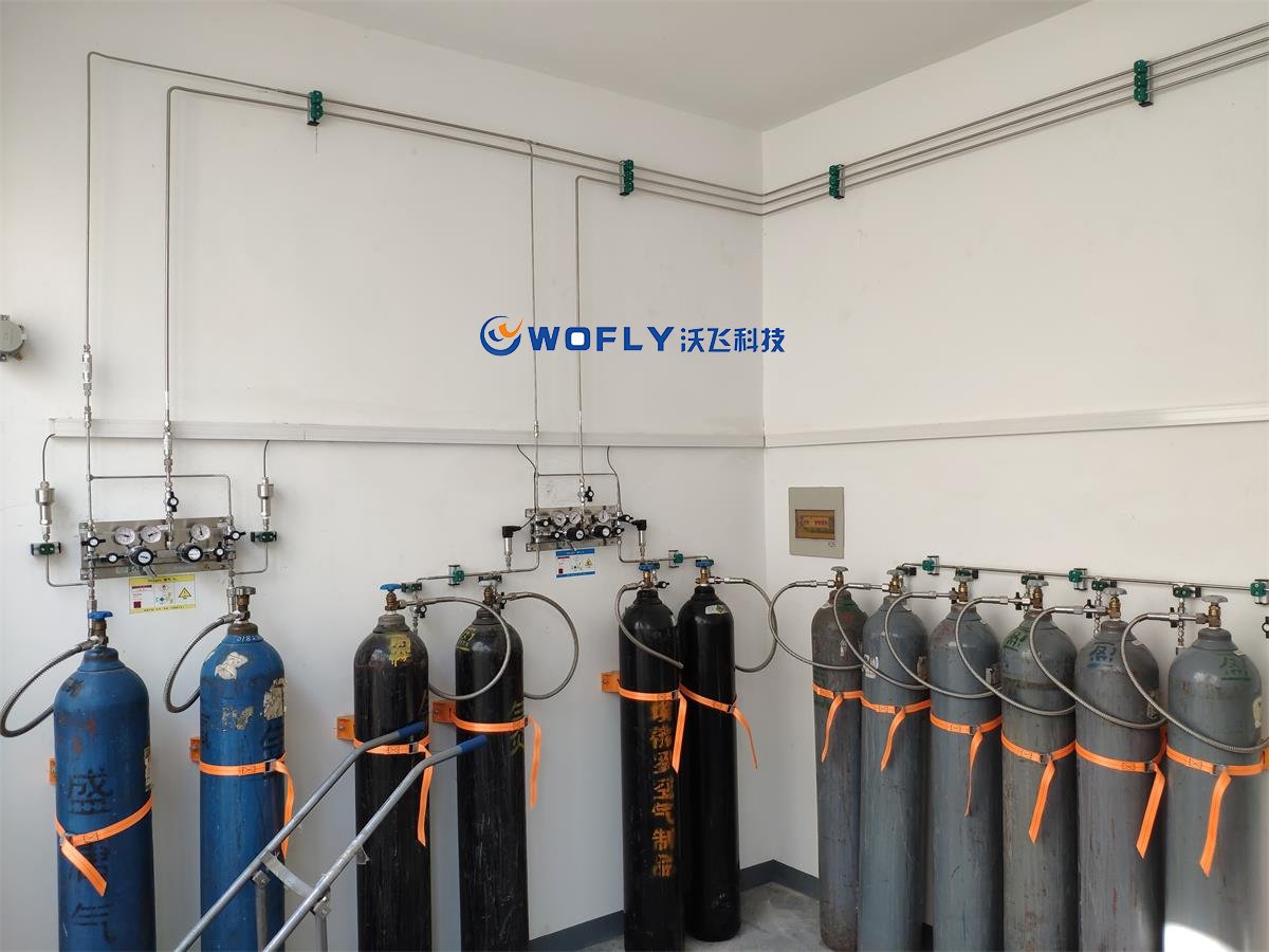 實(shí)驗(yàn)室集中供氣是將所有氣瓶儲存在瓶室(瓶通過氣瓶減壓閥送到各實(shí)驗(yàn)室(即儀器側(cè)))。